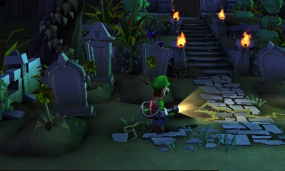 In the game, the "Dark Moon" has shattered, causing the ghosts within Evershade Valley to become evil. It is now up to Luigi to collect the pieces of the moon and put them back together in order to restore peace to the Valley. [10] The game plays similar to its predecessor, with Luigi using a machine called the Poltergust 5000 to suck up ghosts and rid mansions of them. In this game, rather than having one mansion like the first game, it has several, and each is broken down into missions.